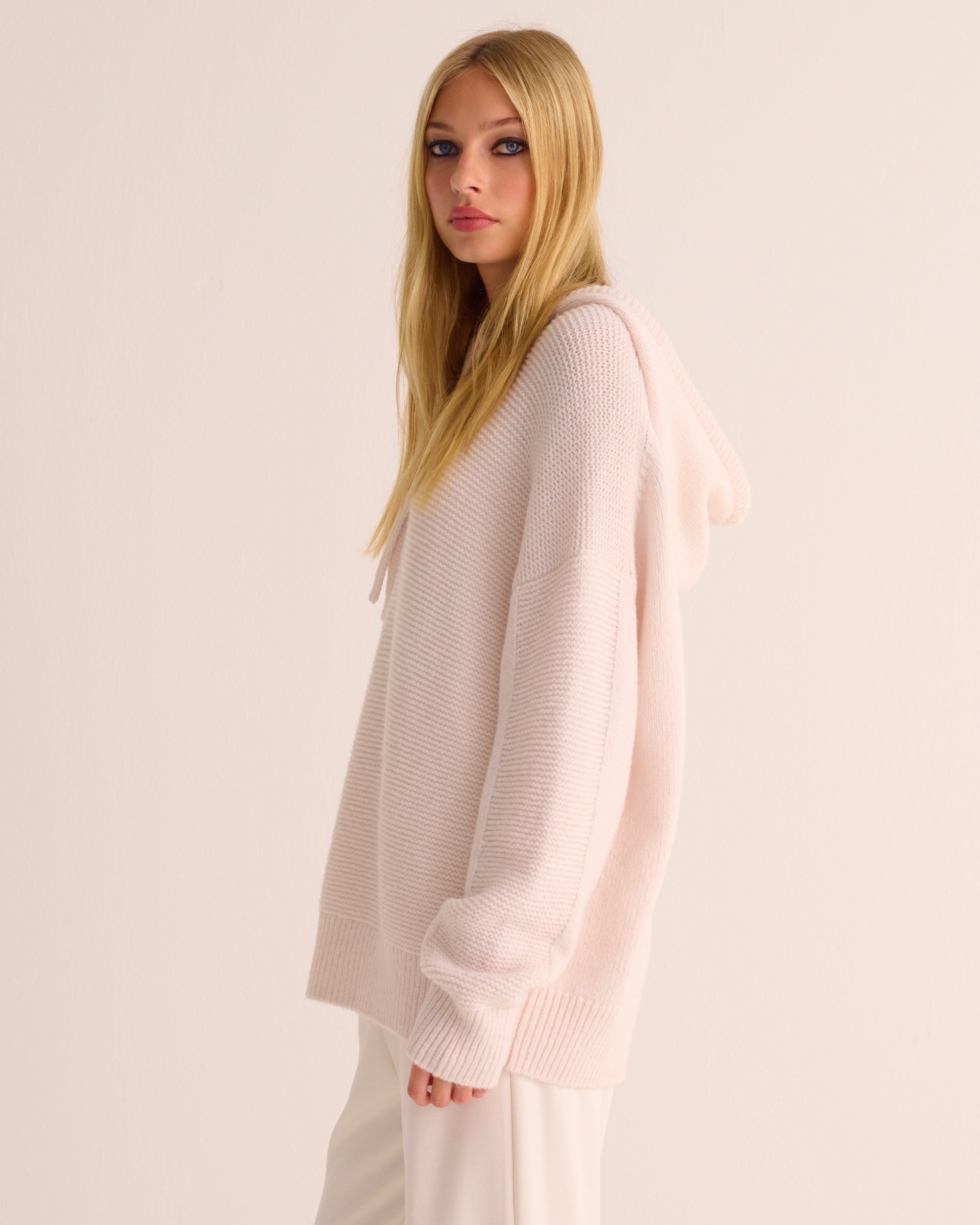 The hoodie, reimagined. Crafted from Wool and brushed Alpaca blend with an engineered stitch design, this piece is featherlight yet warm, with a soft halo texture that feels like wrapping yourself in a cloud. Relaxed yet refined, it layers beautifully over sleepwear, denim, or tailored separates. The ultimate luxury hoodie for winter days, travelling and everyday ease and comfort.