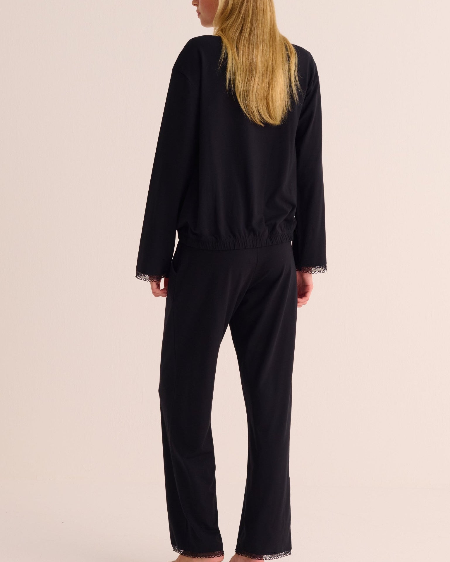 The ultimate in functional luxury. Crafted from super-soft Lenzing™ Modal jersey, this set combines a fluid drape with featherlight comfort. Naturally thermoregulating, it keeps you cool or cosy as needed, while the top with tie and smooth elasticated bottoms are cut to flatter without restriction. Luxe enough for relaxing, chic enough for stepping out, it’s a set that works with your life.