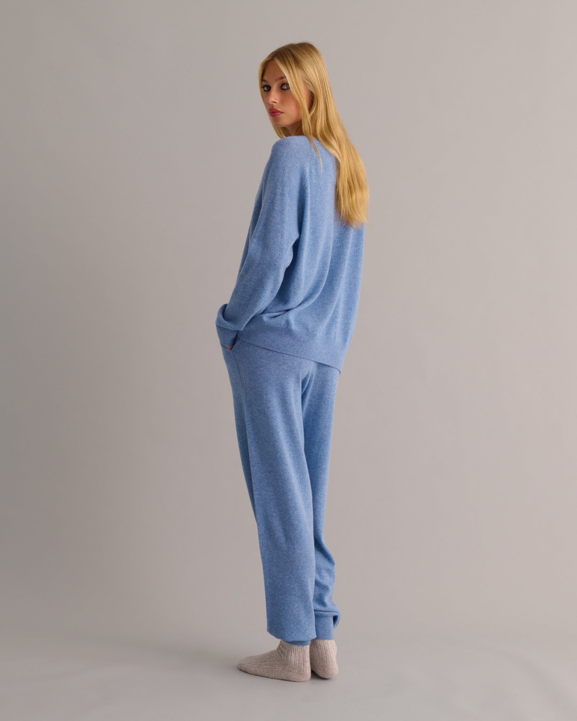 Luxury, in its purest form. Spun from 100% Cashmere, these joggers whisper indulgence with every movement. Air-light yet cocooning, the fluid drape, seamless waistband and cuffed ankle frame the silhouette. Pure silk drawstring tie. Effortless, elevated, and endlessly versatile, pair with our Mix and Match Separates, or team with wardrobe icons for a statement in understated sophistication.