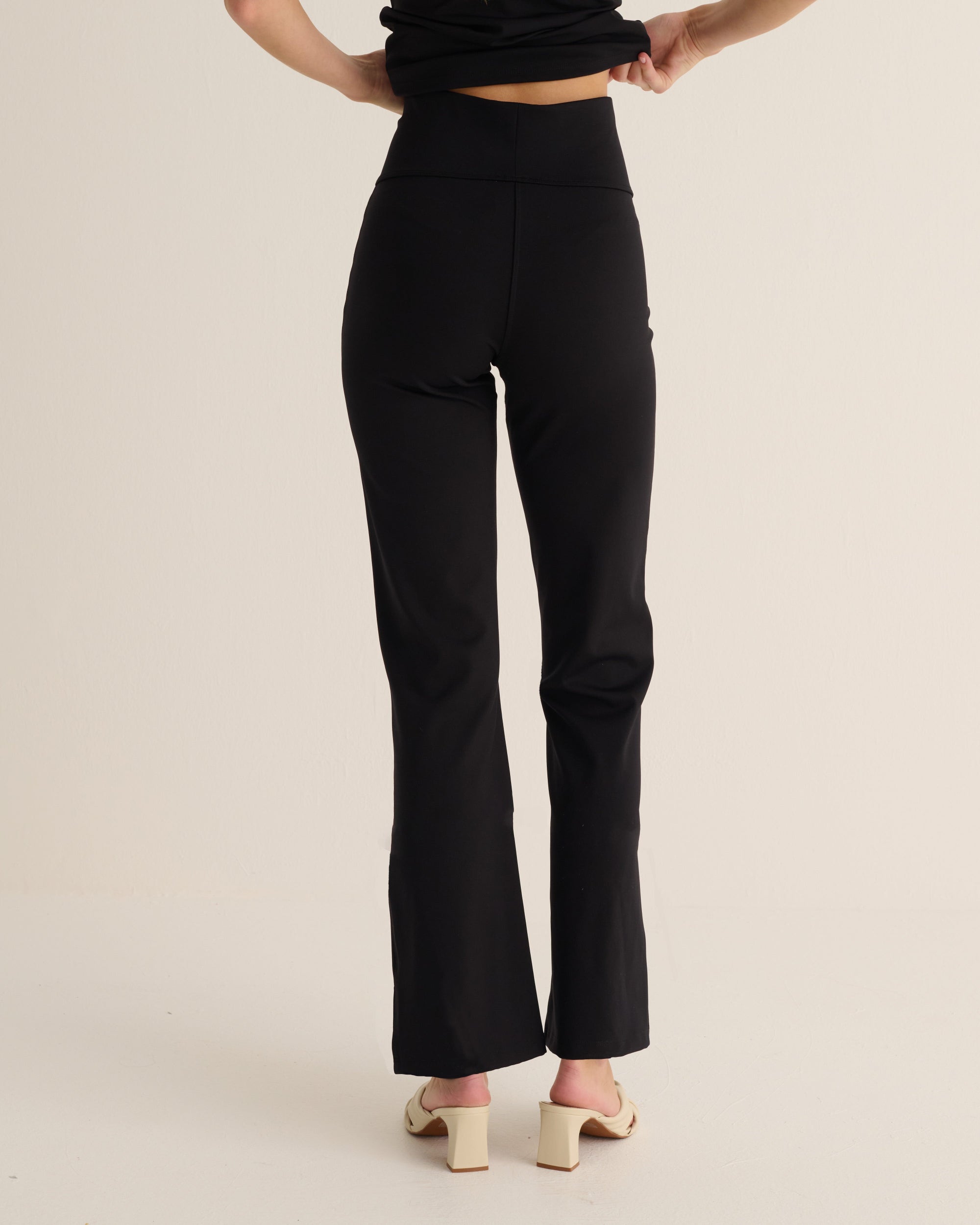 Second-skin comfort meets a sculpted silhouette. These upgraded leggings are crafted from performance technical fabric that moves with your body while holding its shape, hugging through the hips and thighs before falling into a subtle flare. The smooth waistband ensures all-day ease, while gusseted construction prevents awkward shifting. Elevated enough for the street yet effortless at home, they’re confidence-boosting bottoms with the ease of restwear.